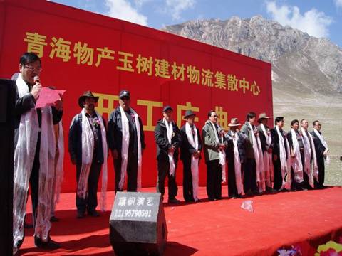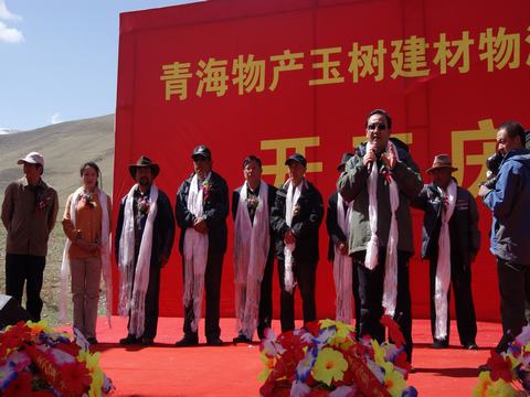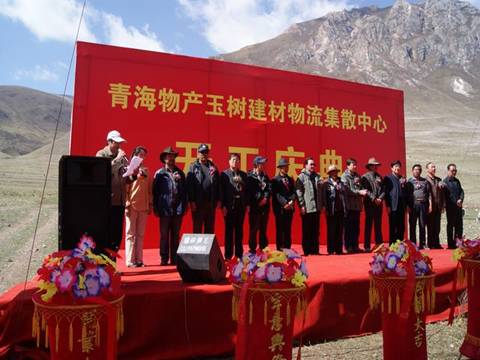 省玉樹(shù)地震災(zāi)后重建現(xiàn)場(chǎng)指揮部指揮長(zhǎng)、副省長(zhǎng)馬順清宣布建材物流集散中心正式開(kāi)工并講話。省政府副秘書(shū)長(zhǎng)巨偉、省經(jīng)委、省城鄉(xiāng)住房建設(shè)廳、西寧市政府、玉樹(shù)州政府相關(guān)部門、玉樹(shù)縣有關(guān)負(fù)責(zé)同志,省物產(chǎn)集團(tuán)總經(jīng)理王玉輝、黨委書(shū)記白家林、副總經(jīng)理物產(chǎn)化工公司董事長(zhǎng)耿保平等參加了開(kāi)工儀式。