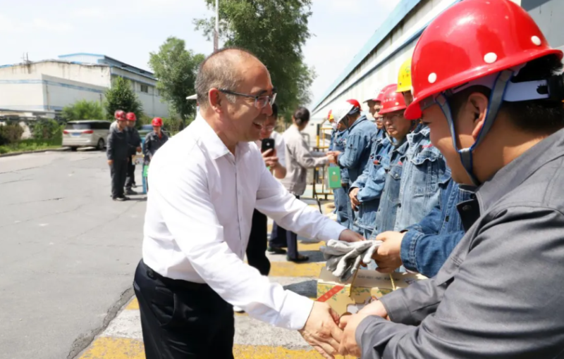 慰問(wèn)現(xiàn)場(chǎng),吳有禎與生產(chǎn)一線職工親切交流,詳細(xì)詢問(wèn)大家的工作環(huán)境、勞動(dòng)保護(hù)措施及防暑降溫落實(shí)情況,對(duì)職工們?cè)诟邷靥鞖庀聢?jiān)守崗位、辛勤付出的精神表示衷心感謝。他指出,炎炎夏日里,廣大干部職工搶抓生產(chǎn)黃金期,不懼酷暑,揮灑汗水,用實(shí)干實(shí)績(jī)?yōu)楝F(xiàn)代化新青海建設(shè)作出了貢獻(xiàn)。隨后,吳有禎一行將防暑降溫用品送到職工手中,同時(shí)叮囑公司負(fù)責(zé)人,要高度重視高溫天氣下的安全生產(chǎn)和職工勞動(dòng)保護(hù)工作,合理調(diào)整作業(yè)時(shí)間,改善勞動(dòng)條件,確保職工身體健康和生產(chǎn)安全。
