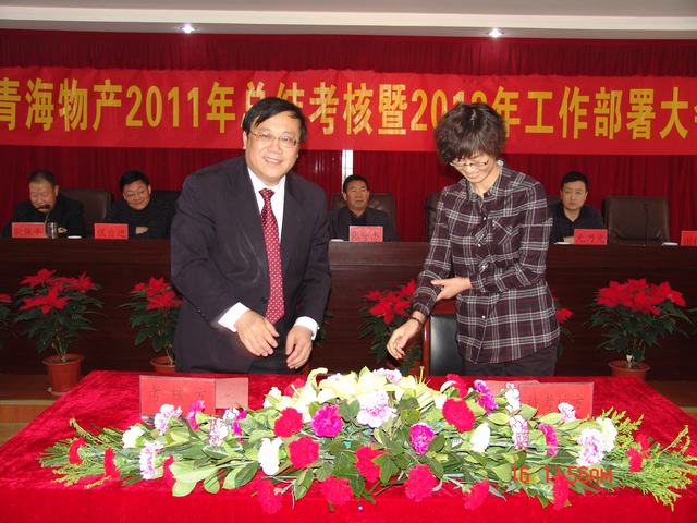 1月16日,集團(tuán)召開2011年工作總結(jié)考核暨2012年工作部署大會(huì),省國資委領(lǐng)導(dǎo)蒞臨大會(huì)、集團(tuán)領(lǐng)導(dǎo)、各公司領(lǐng)導(dǎo)班子、總部全體員工及2011年度先進(jìn)個(gè)人參加了會(huì)議。集團(tuán)總經(jīng)理王玉輝作了題為《奮楫圖治夯實(shí)基,敦行致遠(yuǎn)續(xù)新篇,在"十二五"科學(xué)發(fā)展的大道上闊步前進(jìn)》的工作報(bào)告,黨委書記白家林作了題為《融入中心創(chuàng)先進(jìn),提升發(fā)展?fàn)幭蠕h,大力推進(jìn)青海物產(chǎn)集團(tuán)科學(xué)發(fā)展新跨越》的黨委工作報(bào)告.會(huì)上通報(bào)了集團(tuán)2011年完成省國資委下達(dá)的經(jīng)營考核指標(biāo)情況及各公司主要工作成績和不足,對(duì)2012年工作任務(wù)及黨建工作進(jìn)行了安排部署。