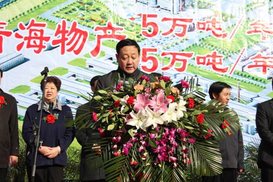 此次投產(chǎn)慶典儀式由青海省國資委副主任毛占彪主持,青海省委常委、副省長駱玉林、青海省人大副主任桑杰、青海省經(jīng)濟委員會主任、青海省政府國資委副主任吳海昆、西寧市政府副市長許國成、中共大通縣縣委書記吳海、大通縣人民政府縣長韓生才、青海省物產(chǎn)集團總公司總經(jīng)理、青海物產(chǎn)工業(yè)投資有限公司董事長王玉輝、青海省物產(chǎn)集團總公司黨委書記白家林以及省、市、縣有關(guān)部門的負責同志參加了投產(chǎn)慶典儀式。